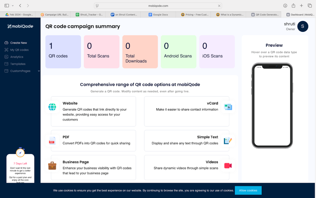 Mobiqode is built for small businesses and marketers who want QR codes that actually do more than just sit there. You can make video QR codes, image QR codes, branded QR codes, and track how everything’s performing. All codes are dynamic, ad-free, and never expire—even if you’re on the free plan.