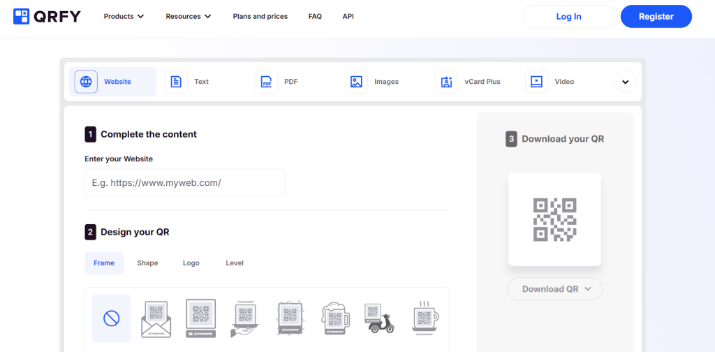 QRfy is one of the newer players and is pretty much all about keeping things simple and cheap. Perfect if your campaigns are small or you just need stuff like Google Forms QR codes or short-term branded activations.
