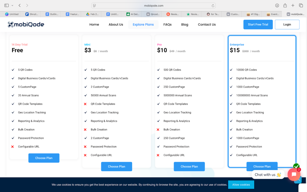 In contrast, mobiQode offers multiple cards even in its free plan and up to 100 cards in its $10 plan. Plus, mobiQode supports bulk creation—available right from the trial and $15/month plans.