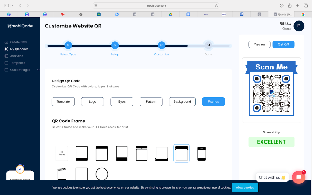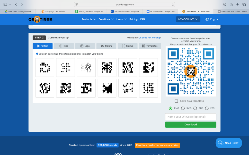 QR Code Tiger provides a few QR code frames but also has notable limitations: users can’t always modify QR code designs after creation, resizing logos is difficult, and the design editor lacks flexibility. Customers have also complained about the strict character counts while customizing the text on the QR codes.