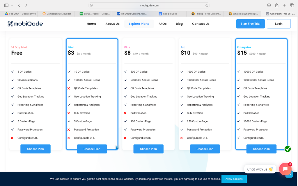 Mobiqode offers fully dynamic codes in every plan (5 in the free plan compared to 3 free dynamic codes offered by QR Code Tiger). All links remain editable without forced upgrades or unexpected interruptions. Plus, Mobiqode’s highest paid plan priced at $15/month offers 10,000 dynamic QR codes whereas QR Code Tiger’s highest paid plan priced at $37 only offers 600.