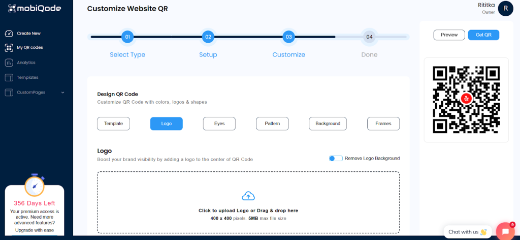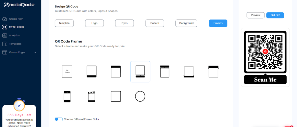 Choose a QR code generator like Mobiqode that lets you change things up to get started. Make sure it lets you add a logo, modify colors, and change the general look of the code so that it fits with your brand.