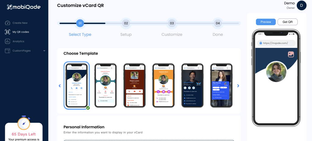 With dynamic QR codes, you can skip reprints, keep your info fresh, and even track who’s scanning. Mobiqode makes it super easy to create fully customizable, editable, and trackable QR codes. Your business cards instantly look smarter, more professional, and way more useful.
