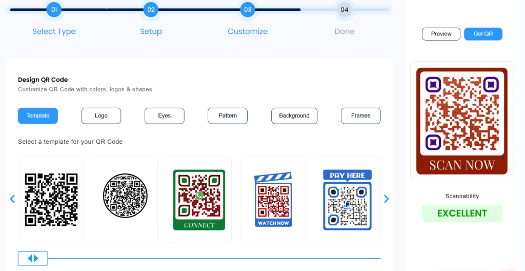 Tweak colors, patterns, and add your logo to match your brand. You can even make image or video QR codes.